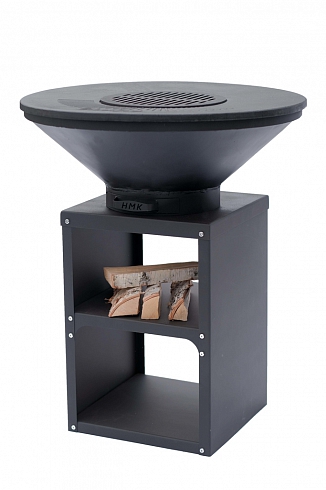 Гриль-очаг очень прост в использовании: дрова закладываются в центр очага, на решетке гриль можно готовить сразу после закладки дров, а на жарочной поверхности через 20-25 минут. Жарочная поверхность имеет диаметр 790 мм и сконструирована таким образом, чтобы излишки масла сами стекали в огонь и не попадали наружу.
