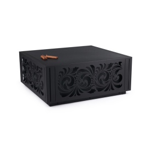 Дизайн облицовки в стиле традиционной хохломской росписи выполнен в элегантном черном цвете.