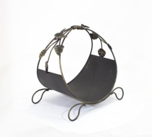 Дровница изготовлена из прутка ф8,0мм, в основании лист 0,8мм. Добавлены элементы горячей ковки в виде бабочки, листьев и веток. Цвет черный с золотой патиной. Покрыта термостойким лаком и эмалью.