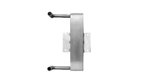 Штуцеры для подключения имеют выход под углом 90 градусов, и при креплении на стенку топки могут располагаться как в передней, так и в тыльной части топки.
