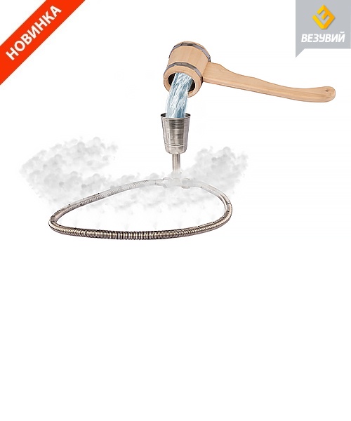 Трубка парогенератора сделана в виде гибкого кольца, чтобы количество воды, подаваемой в разные стороны каменки, было одинаковым и камни слева и справа от парогенератора имели одинаковую температуру.