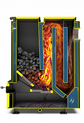 Для поддержания горения котел оснащен подвижной колосниковой решеткой из чугуна, с помощью которой в рабочем режиме осуществляется встряхивание углей, а в аварийном режиме — сбрасывание топлива в большой зольный ящик. Отличительная черта котлов всех линеек серии «Куппер» — универсальность. Она заключается в возможности «перевода» котлов на другие виды топлива (пеллеты) при установке соответствующих горелок. При необходимости он может работать на дровах и топливных брикетах.