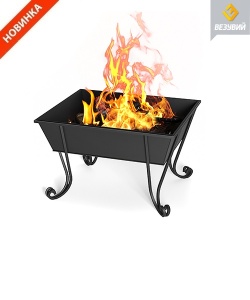 Устройство изготовлено из конструкционной стали толщиной 3 миллиметра. Такая сталь хорошо выдерживает высокие температуры и значительную весовую нагрузку. Высота костровой чаши делает контроль за горящим огнём более удобным, облегчает подкладывание дров, ворошение углей и уход за самим устройством. Скошенные боковые стенки костровой чаши облегчают уборку не прогоревших дров, углей и золы. Для усиления конструкции по её верхнему краю приварен квадратный металлический пруток сечением 10 миллиметров, предотвращающий деформацию стенок чаши и нарушение геометрических пропорций. Из такого же прутка сделаны изящные кованые ножки костровой чаши, вносящие в дизайн конструкции элементы изыска.