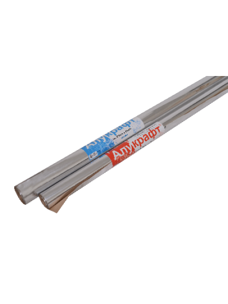 Мы предлагаем алюминиевую фольгу на крафт-бумаге нашего производства. Высота рулона 1,2 м, площадь материала в рулоне 18 кв.метров.