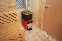 • Нагрев камней в каменке происходит от самого раскалённого элемента — дымосборника, вокруг которого выкладываются камни.