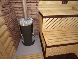 • Нагрев камней в каменке происходит от самого раскалённого элемента — дымосборника, вокруг которого выкладываются камни.
