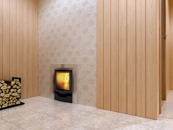• Выход дымовой трубы смещен от края к центру каменки, что значительно упрощает монтаж дымохода.