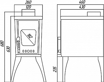 Печь-Камин Гармония Афина имеет сменный отбойник пламени внутри топки, который не позволяет дымовым газам выходить сразу в дымоход. На верхней панели печи имеется варочная панель, для приготовления пищи.