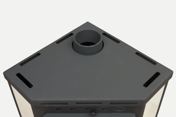 Топка печи камина изготовлена из стали толщиной 6 мм, оборудована чугунным колосником и выложена шамотным кирпичом. Толщина стали контура печи — 3 мм. Грамотно спроектированный конвективный контур производит хороший съем тепла печи.
