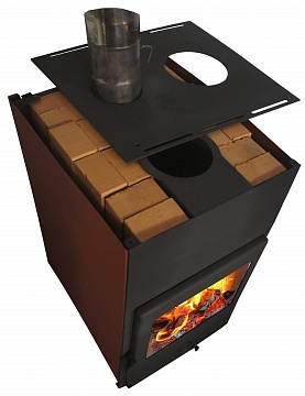Также, как засыпной карман может использоваться и отбойник печи. Его же можно заполнить не только кирпичом, но и другим аккумулирующим материалом (например, песок), что также повлияет на продолжительную работу печи после прекращения горения внутри нее.
