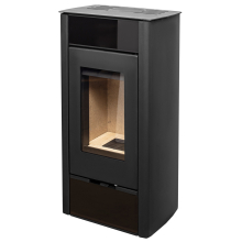 Боковые стенки печи и передняя панель отделаны закаленным окрашенным в черный цвет стеклом