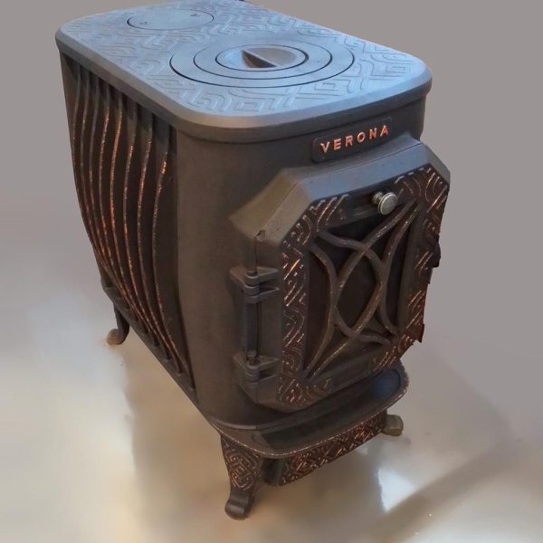 Интерьерная чугунная отопительная печь Verona предназначена для отопления помещений общим объёмом до 200 м³. В качестве топлива используются дрова длиной до 54 см или древесные топливные брикеты.
