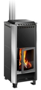 • Дверца с жаростойким стеклом позволяет любоваться игрой пламени в топке.