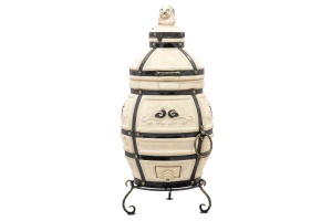 Тандыр "Аполлон" выполнен в виде овального бочонка среднего объёма. Тандыр имеет крышки двух уровней (колпачок и крышку). Удобно выполненный колпачок, позволяет не терять тепло при открывании тандыра. А крышка с удобными ручками позволяет легко открывать тандыр и закладывать в него продукты для приготовления. Кованная подставка - ножки обеспечивает удобное использование тандыра. Красоту тандыру придаёт орнаментальный растительный узор, расположенный в центральной его части. Керамический тандыр в основном выполнен в бежевом цвете, коричневый цвет добавлен в области орнамента. На поверхность орнамента нанесена глазурь, которая защищает его от влаги и грязи. Изготовленный из шамотной глины высокотемпературного обжига он обладает высокой теплопроводностью, экологичностью, прочность и долговечностью более 10 лет.