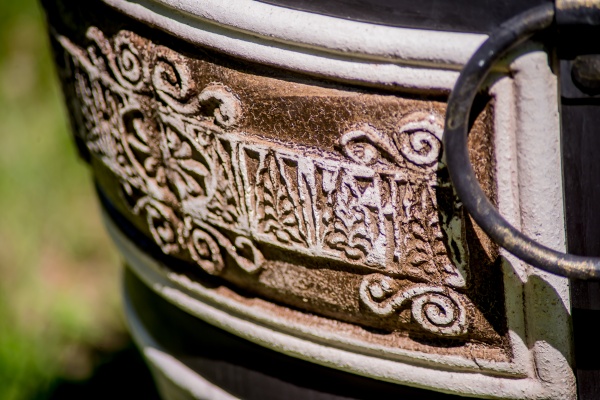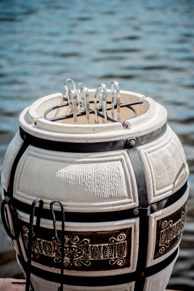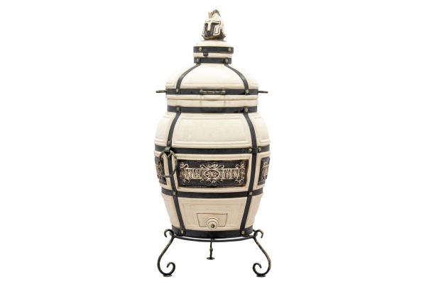 Тандыр "Гектор" выполнен в виде округлого бочонка среднего объёма. Тандыр имеет крышки двух уровней (колпачок и крышку). Удобно выполненный колпачок, позволяет не терять тепло при открывании тандыра. А крышка с удобными ручками позволяет легко открывать тандыр и закладывать в него продукты для приготовления. Кованная подставка - ножки обеспечивает удобное использование тандыра. Красоту тандыру придаёт интересный декоративный орнамент, расположенный в центральной его части. Керамический тандыр в основном выполнен в бежевом цвете, коричневый цвет добавлен в области узора. На поверхность орнамента нанесена глазурь, которая защищает его от влаги и грязи. Изготовленный из шамотной глины высокотемпературного обжига он обладает высокой теплопроводностью, экологичностью, прочность и долговечностью более 10 лет.