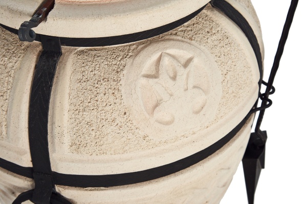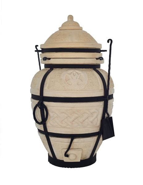 Тандыр Амфора производится из экологически чистых отечественных керамических огнеупорных материалов, обжигается при температуре свыше 1100 градусов Цельсия, для прочности и красоты оковывается металлом. Несмотря на то, что при использовании могут возникать волосяные трещины, стальная оковка с элементами ковки прочно удерживает тандыр. Срок службы тандыра не ограничен, при правильном использовании, он вам прослужит годы и десятилетия.