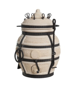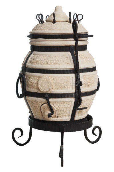 Тандыр Амфора производится из экологически чистых отечественных керамических огнеупорных материалов, обжигается при температуре свыше 1100 градусов Цельсия, для прочности и красоты оковывается металлом. Несмотря на то, что при использовании могут возникать волосяные трещины, стальная оковка с элементами ковки прочно удерживает тандыр. Срок службы тандыра не ограничен, при правильном использовании, он вам прослужит годы и десятилетия.