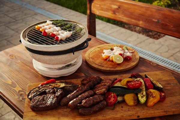 Настольная жаровня-гриль изготовлена нашей компанией из высококачественного сырья. Это делает ее прочной и долговечной. Керамический материал также действует как аккумулятор тепла, что снижает потребление топлива.